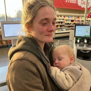 It was almost closing time when a tired young mother stepped into my checkout lane, her baby sleeping against her chest and exhaustion written all over her…
