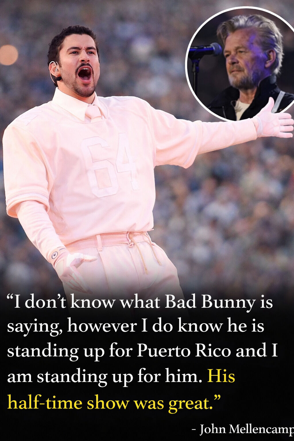 Bad Bunny’s Puerto Rican–inspired halftime show at Super Bowl LX didn’t just excite fans inside Levi’s Stadium — it also earned praise from rock legend John Mellencamp….